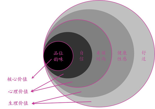 如果說定位“修身內(nèi)衣”是結(jié)合競爭對手、目標(biāo)群體和自身的資源及能力,找準(zhǔn)了可供挖掘差異化的爆破點,那么接下來要做的便是深度挖掘衣馨品牌的核心價值,理順品牌屬性、利益和價值之間的邏輯關(guān)系,打造差異化、持續(xù)化的品牌價值體系。