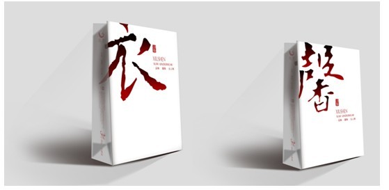 標(biāo)志圖形當(dāng)中這種根源于中華書法的“別致”,亦沿襲到了衣馨內(nèi)衣的購物袋設(shè)計之中(圖12、圖13):