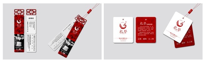 至于吊牌,南方略則提出了以上兩套備選方案(如圖20、圖21所示)。兩者皆為深紅打底,“花開富貴”。一則取形古典屏風(fēng),賞心悅目之余,更讓人聯(lián)想到秦觀《浣溪沙》中那“淡煙流水畫屏幽”的意境;“一切盡在不言中”,讓衣馨品牌對于傳統(tǒng)文化的繼承和詮釋以潤物細無聲的形式,悠然遁入消費者的視野和內(nèi)心。一則用簡單大方的造型,直接展現(xiàn)衣馨內(nèi)衣的“品牌故事”——