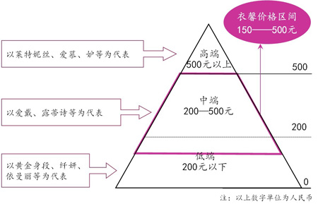 調(diào)整型內(nèi)衣的定價普遍在300至700元。在產(chǎn)品品質(zhì)方面擁有眾多擁躉與良好口碑的衣馨內(nèi)衣,致力于在最為合理的價位,為現(xiàn)代知性女性帶來最為精致、最為貼身、最為舒適的修身內(nèi)衣,協(xié)助有品位的她們進行“內(nèi)外兼修”。(圖18)可以說,“時尚而不張揚”、“簡約而不簡單”、“高質(zhì)而不高價”和“精致而不奢侈”這四句話,既是現(xiàn)代都市知性女性對內(nèi)衣的理解和需求,又是衣馨內(nèi)衣所孜孜以求的境界。