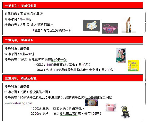 (1)為了促進(jìn)產(chǎn)品在終端市場的動(dòng)銷,展開了三重好禮賀新生的促銷活動(dòng):