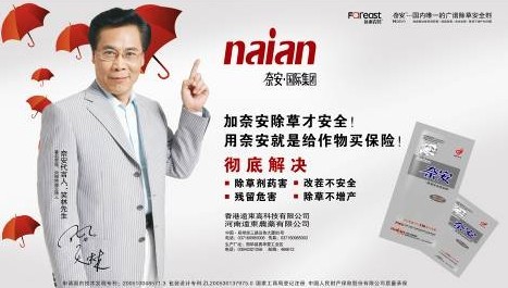作為農業產品,其面對的消費者都是終端農戶,如何快速地在農戶心目中建立自身形象。達到教育消費者的目的呢?當時,在奈安的聚焦市場:東北以及華北地區。農化產品基本上都會借助東北二人轉演員作為形象代言人。既然是大家普遍采用的一種方式,奈安如何另辟蹊徑呢?此時大家目光一致鎖定了一個人——笑林。首先,他是南方笑星的代表,在中國具有一定的知名度,也滿足消費者關注喜劇演員代言農資產品的特性。其次,他還是中央電視臺7套《每日農經》的節目主持人,也滿足教育消費者的形象。黨總當機立斷,在不多的資金中拿出120萬與笑林簽訂了3年的形象代言合同!此時作為一個創業者這是需要何等的魄力!