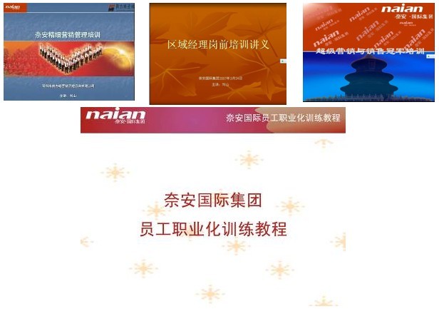 首先培訓先行,項目組針對新員工,新團隊的特點。系統地開發了《奈安員工職業化訓練教程》、《超級營銷與銷售冠軍培訓》、《奈安精細營銷管理培訓》、《區域經理崗前培訓講義》等從素質到技能的培訓課程。
