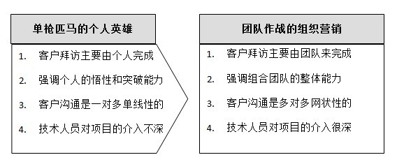 由單槍匹馬的個(gè)人英雄向團(tuán)隊(duì)作戰(zhàn)的組織營(yíng)銷(xiāo)轉(zhuǎn)變。