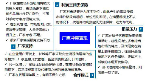 3、 代理商利益保障度低,廠商沖突較大
