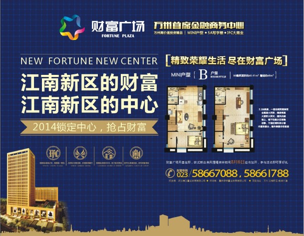 在第二輪強銷階段,主體產品進行轉變,由公寓轉變為寫字樓產品,其主題也更換為“金融大平臺,財富新天地”,宣傳重心也由常規的媒體廣告轉向渠道營銷,除品牌宣傳的角度進行調整,報媒增加軟文廣告進行專業話題式營銷,活動也更專注于渠道,利用三峽銀行資源,召開三峽銀行內購簽約儀式,財富高峰論壇等圈層營銷,針對金融及泛金融人群,定向展開商圈、寫字樓的擺臺、巡展,以及短信及信函、郵件的發送、投遞的“夏日風暴”行動。行動的展開,在萬州寫字樓市場引起高度關注,項目知名度大幅提升。