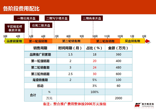 南方略根據項目的進度及全年營銷節點特征,結合全年推廣費用的預算安排,因地制宜選擇適合的推廣載體及手段,安排財富廣場的推廣階段及計劃!