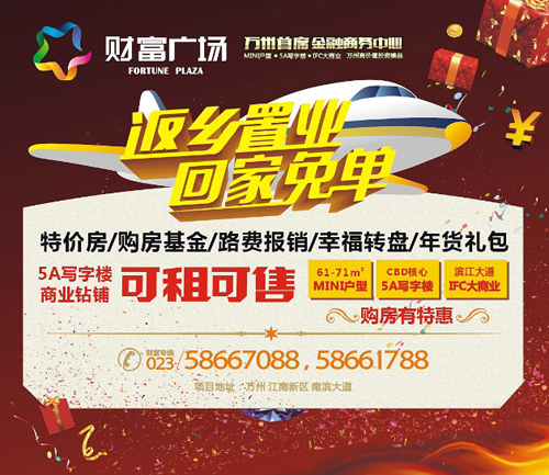 重慶萬州財富廣場項目為一個小型綜合體項目,開發商為重慶綠筑置業發展有限公司。項目位于江南新區中央商務CBD區域,體量約11.3萬方,涵蓋了MINI戶型、5A寫字樓和IFC大商業項目,將打造成為江南新區首席金融商業綜合體。