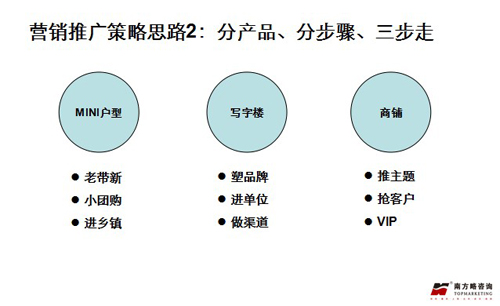 --寫字樓:以渠道為主、活動為輔,銷售租賃兩手抓,完成最后稀缺價值的占位,善用三峽銀行和價值策略,拓寬渠道,搶占先機;