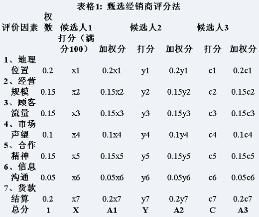 加權總分中A1、A2、A3,哪個值大,說明這個經銷商可取性大。