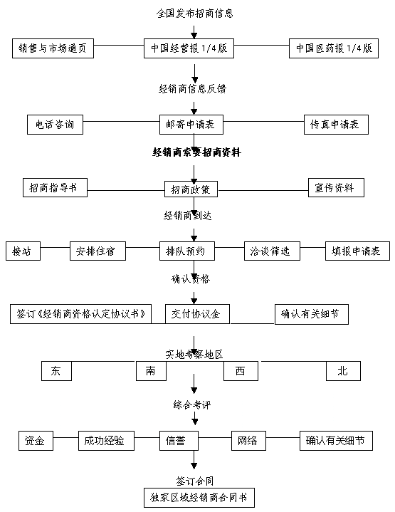 1、經銷商區域劃分:按中華人民共和國行政區劃分,依次以每個省、直轄市、自治區及地極市為招商區域單位。