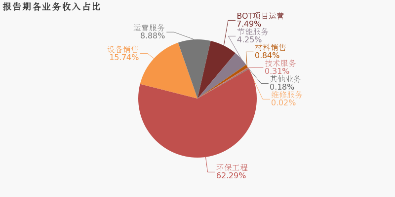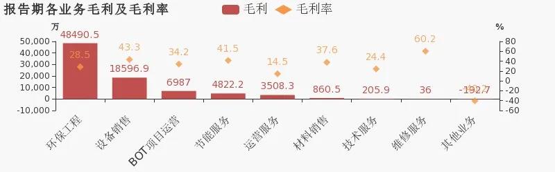 從業務結構來看,“環保工程”是企業營業收入的主要來源。具體而言,“環保工程”營業收入為17億,營收占比為62.3%,毛利率為28.5%。