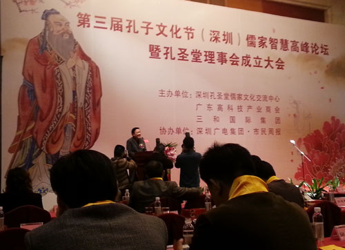 由深圳孔圣堂儒家文化交流中心、廣東高科技產業商會、三和國際集團主辦的深圳孔子文化節,今年進入第三個年頭。“民德歸厚,天下歸仁”,主辦方希望借孔子文化節弘揚傳統文化,凝聚整個民族的能量和信心。矗立在東湖公園的孔子青銅像,就是首屆孔子文化節期間,由三和國際集團捐資鑄造。