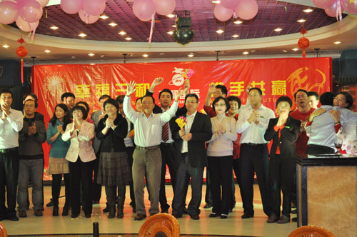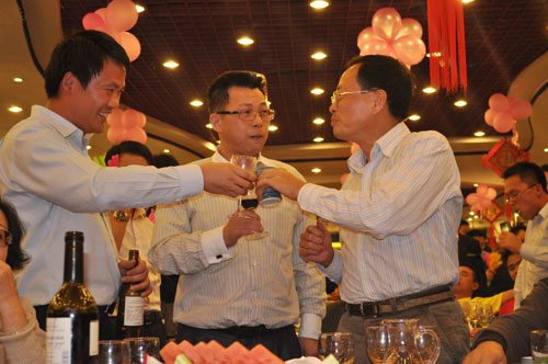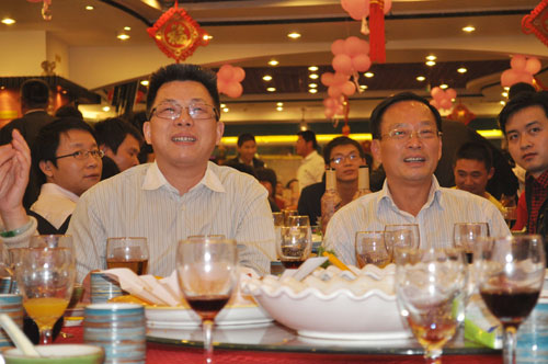 劉祖軻董事長和三和國際董事長張華觀看三和國際年度晚會