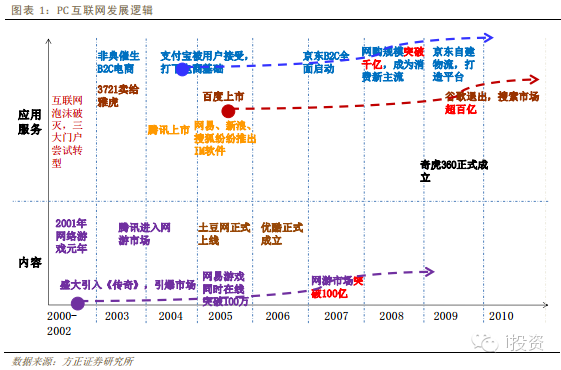 在研究移動互聯(lián)網(wǎng)投資機會之前,回顧PC互聯(lián)網(wǎng)的發(fā)展對于我們理解互聯(lián)網(wǎng)產(chǎn)業(yè),更好把握移動互聯(lián)網(wǎng)投資機會有很大的幫助。