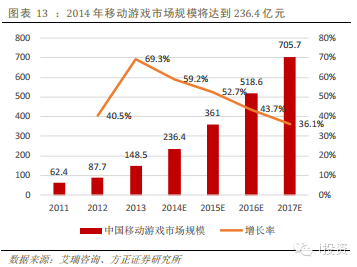 我們認為目前唯一明確的移動內(nèi)容增量市場是移動游戲,而移動游戲產(chǎn)業(yè)鏈中,移動分發(fā)平臺通過整合產(chǎn)業(yè)鏈具備強大議價能力,我們認為移動分發(fā)平臺是受益于2014年移動游戲市場爆發(fā)的高彈性細分行業(yè)。