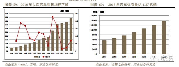 從下圖可以看到,2010年以后全國汽車銷量增長有明顯下降,2011年-2013年的增長率分別為2.5%、4.3%和13.9%,汽車銷售的瓶頸已經(jīng)顯現(xiàn),而汽車銷售互聯(lián)網(wǎng)化可以幫助車廠和經(jīng)銷商提升汽車銷售的效率,解決用戶在購買汽車過程中的多項用戶痛點,所以當前汽車互聯(lián)網(wǎng)化的O2O模式發(fā)展主要集中在此環(huán)節(jié)。