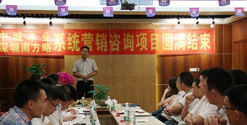 9月13日中城木業與南方略系統營銷項目咨詢總結會議在中城木業舉行,會議由中城木業營銷副總經理母小林主持。出席本次會議的有:中城木業董事長王愛兒、南方略董事長劉祖珂、中城木業總經理孫林中、營銷總經理廖治雄、營銷副總經理母小林以及其它部門經理和南方略的咨詢組成員。