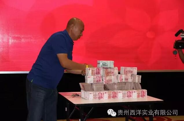 現場數百萬現金擺放于會場前方,等待著經銷商分享企業發展的紅利。