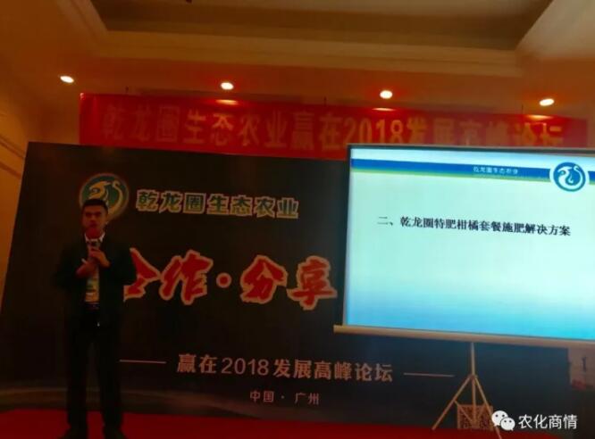 ▲廣州市乾龍圈生態(tài)農(nóng)業(yè)股份有限公司銷售總監(jiān) 朱軍偉分享了三方面內(nèi)容:1、柑橘產(chǎn)業(yè)大環(huán)境的變化及趨勢(shì);2、乾龍圈特肥柑橘套餐施肥解決方案;3、聚焦作物、用心服務(wù)