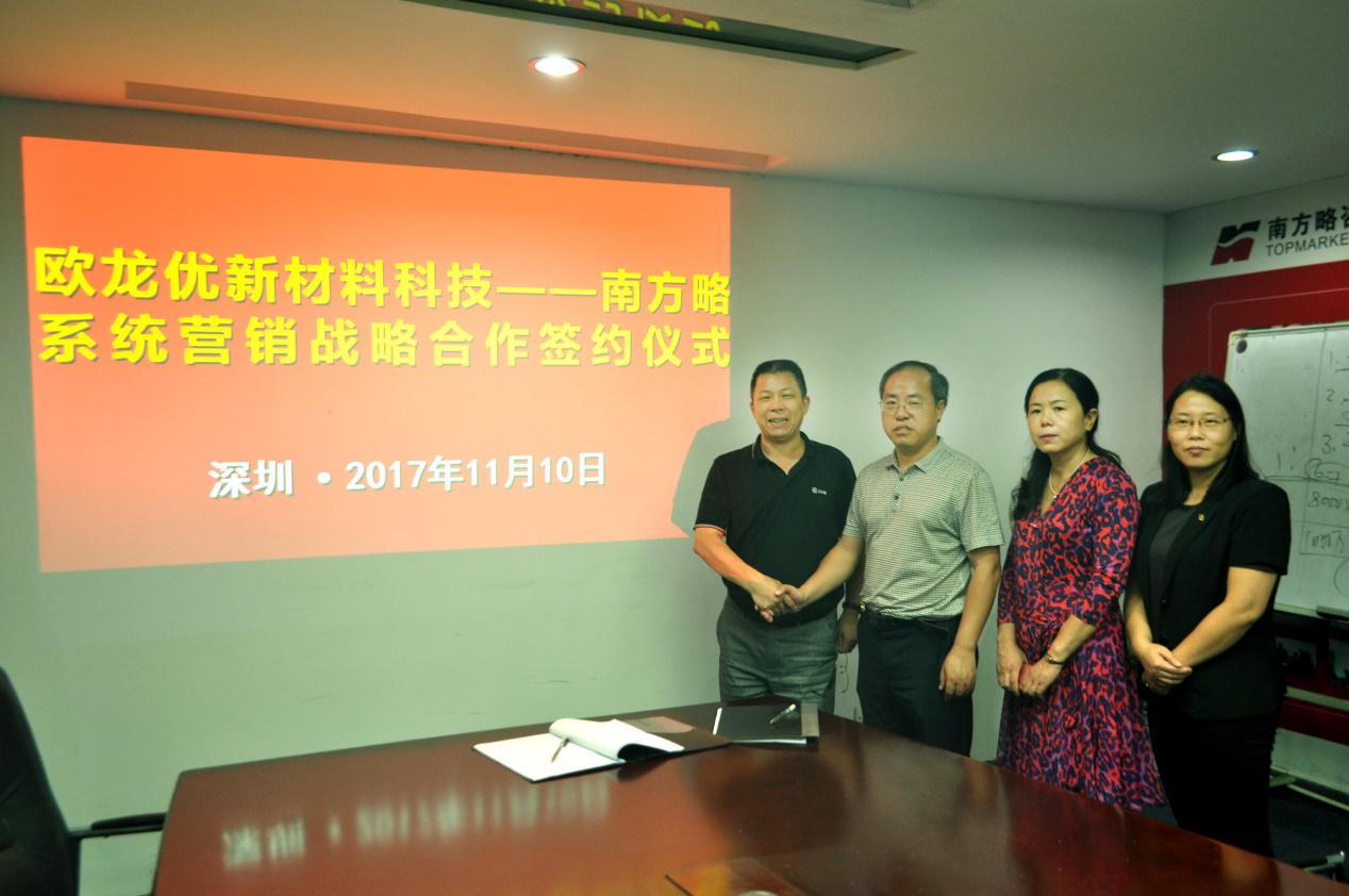 2017年11月10日,深圳市歐龍優新材料科技有限公司與南方略國際營銷&品牌咨詢機構系統營銷戰略合作咨詢項目在深圳正式啟動。